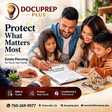 DocuPrep Plus is a professional document preparation and tax service company dedicated to assisting individuals, families, and small businesses with their most important financial and legal documentation needs.
